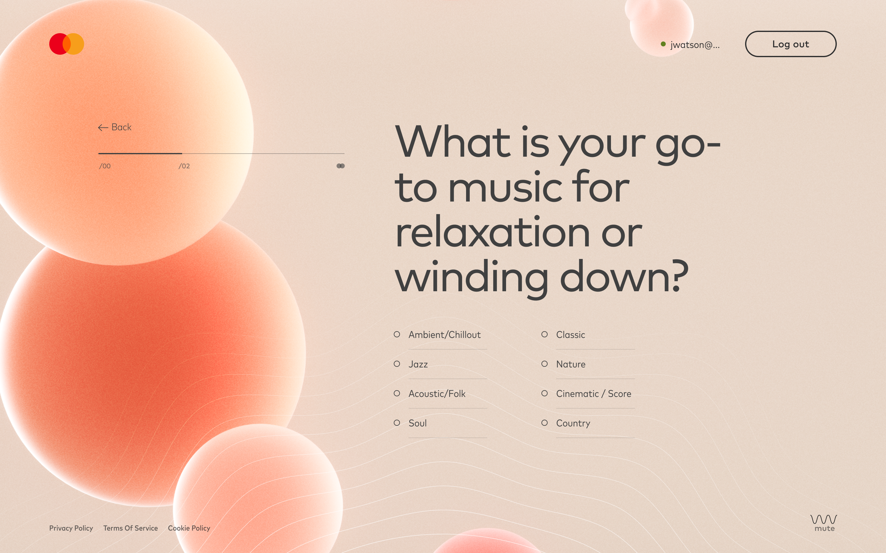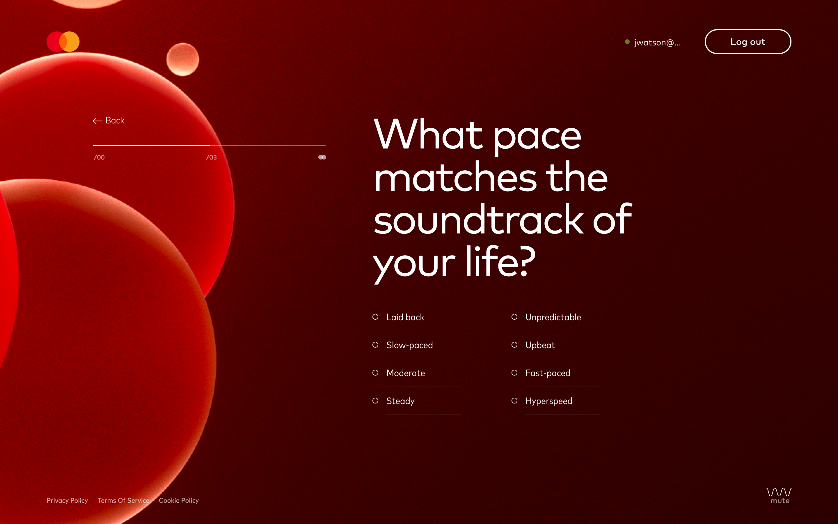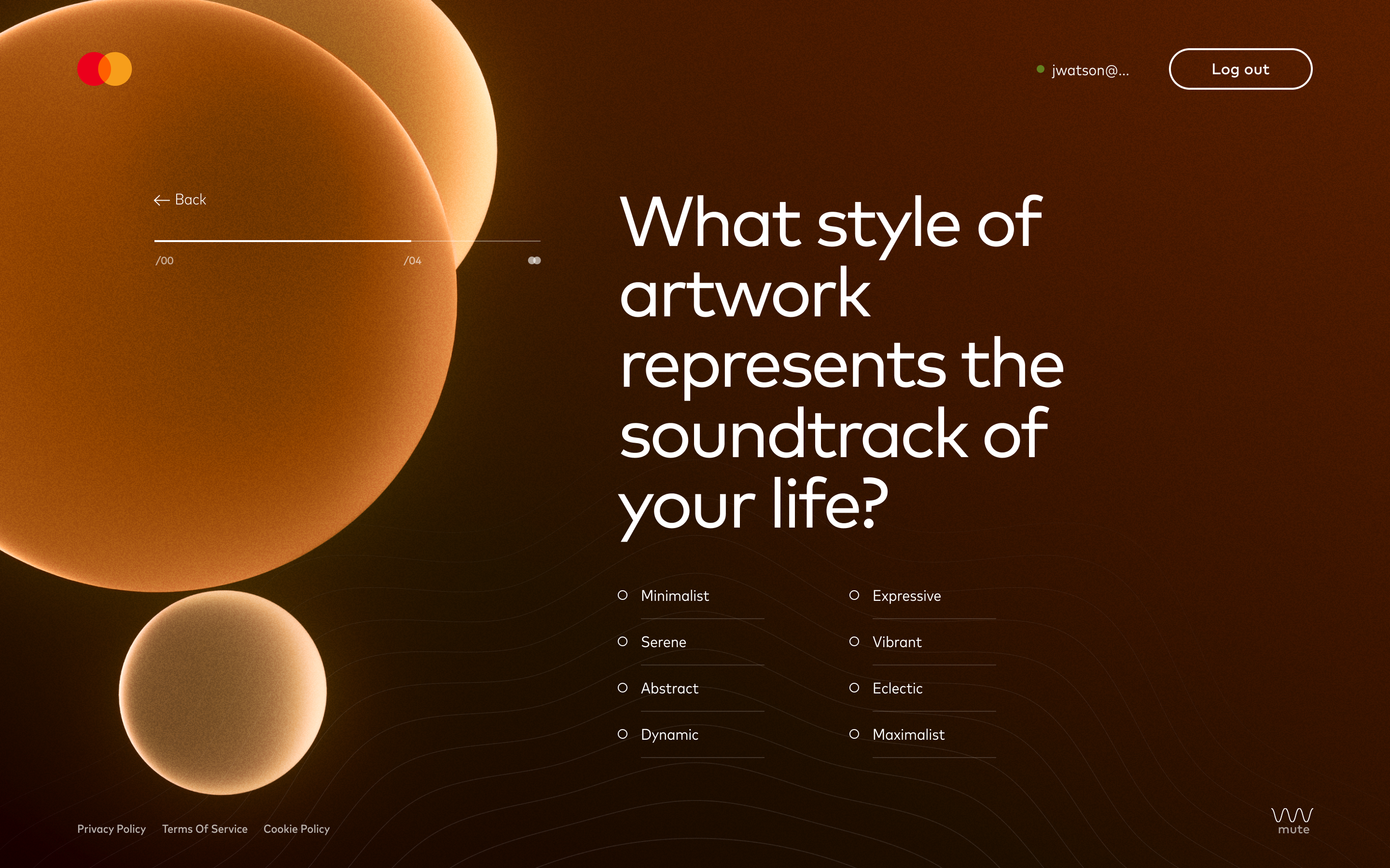 Each question in the journey correlated to a specific behavioral rule that influenced the overall composition of the Music Pass. In total, there were five traits, each containing eight options, combining to form a unique visual and auditory identity for every user.